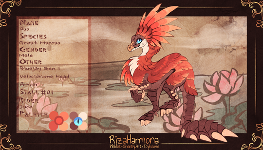 Rio was well trained and very experienced so he knew that he could survive out in the wilds but he was still concerned with leaving Jace behind. Rio has left Jace his first born, a Great Maccao the color of autumn and the lineage to pass down emperor's marbling. Knowing that his son would only ever receive the best life, Rio set off to the wilds to find his heart.