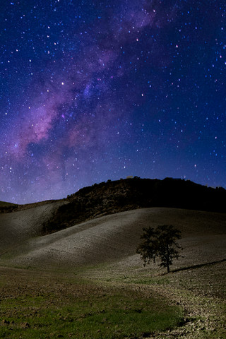 I imagine myself, leaning against that tree, with a book or something else that's good, enjoying nature. I absolutely love the colours of the sky, and how it gradually changes from yellow to blue. The details of the milky way are stunning!
