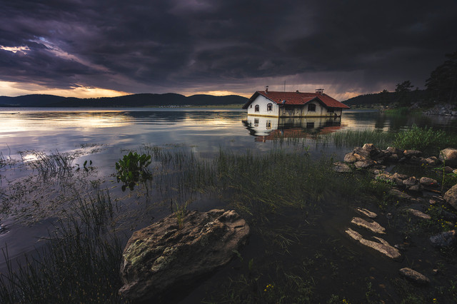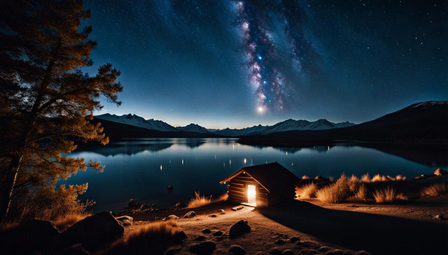 Terrific photo!Β Above the house to the left we see Mars, brighter than usual as it approaches opposition.Β Above the Teapot of Sagittarius is Saturn to the left of the Prancing Horse in the Milky Way.