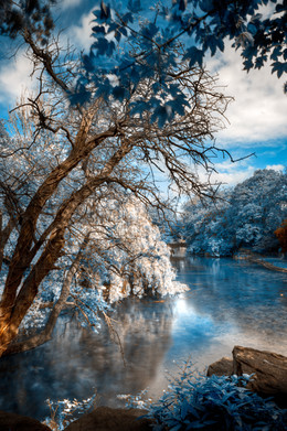 Many thanks but not hoarfrost on the trees. This is an infrared photograph. Taken with an infrared filter