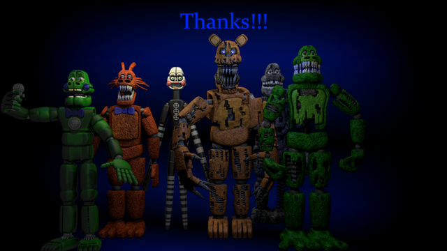 I don't know if I'll even fully make any of these. Maybe Ft. Fredbear or N.Candy? Not sure (I would make a poll if I had core, rep).Also, thanks for 600 watchers! I might release a model or something, idk. lol