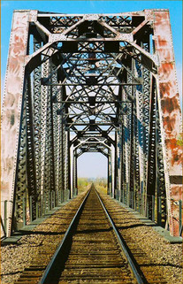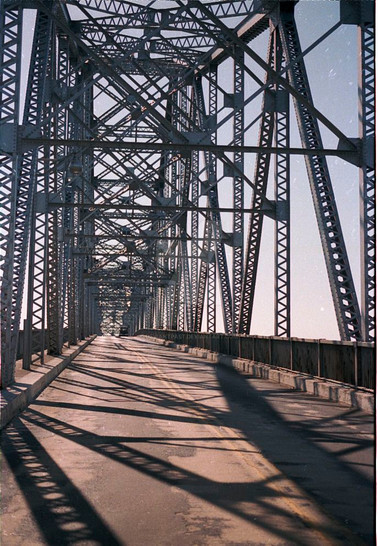 6/9/09 - Old Chain Of Rocks Bridge, Route 66, Illinois. Revisited.The Chain of Rocks Bridge spans the Mississippi River on the north edge of St. Louis, Missouri with the eastern end of the bridge on Chouteau Island, (part of Madison, Illinois). It was completed in 1929 and shortened travel time between St. Louis and Madison. It is a cantilever through-truss and one of the longest continuous steel truss bridges in the country at 5,353 feet long. One of the most distinctive features of the Chain of Rocks Bridge is the 22-degree bend in the middle, which allowed southbound riverboats to align with the current, slip between the Bridge's piers and avoid crashing into two water intake towers midstream just south of the bridge. The Chain of Rocks Bridge became a part of Route 66 in 1936 and was used until 1968 until the opening of the toll-free I-270 bridges caused a decline in traffic. It now carries walking and biking trails over the river was added to the National Register of Historic Places in 2006. The bridge's name comes from a rock-ledged reach of river literally described as a chain of rocks, stretching for seven miles immediately to the north of the city of St. Louis.