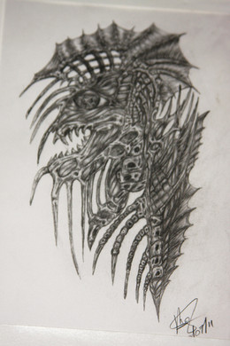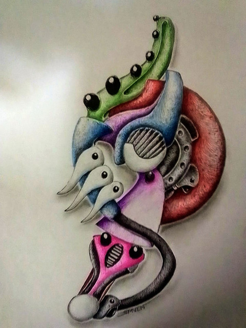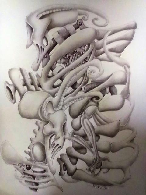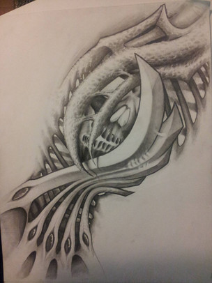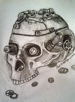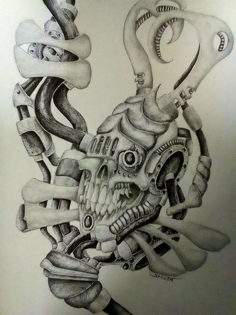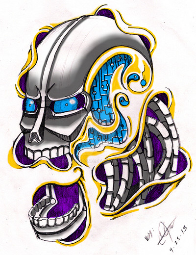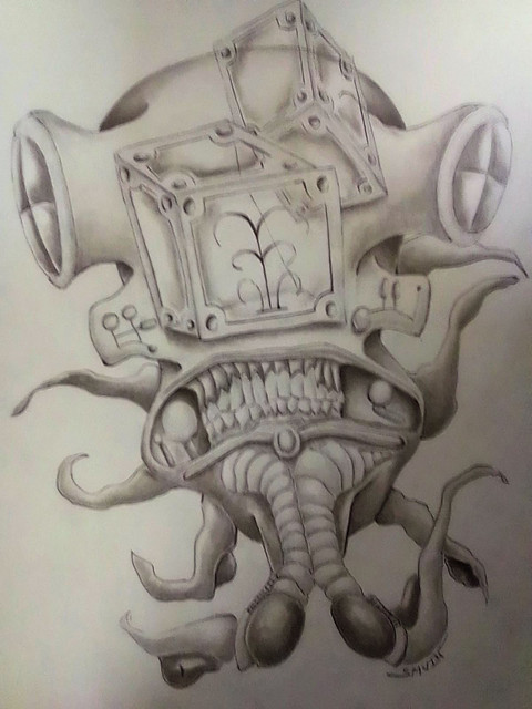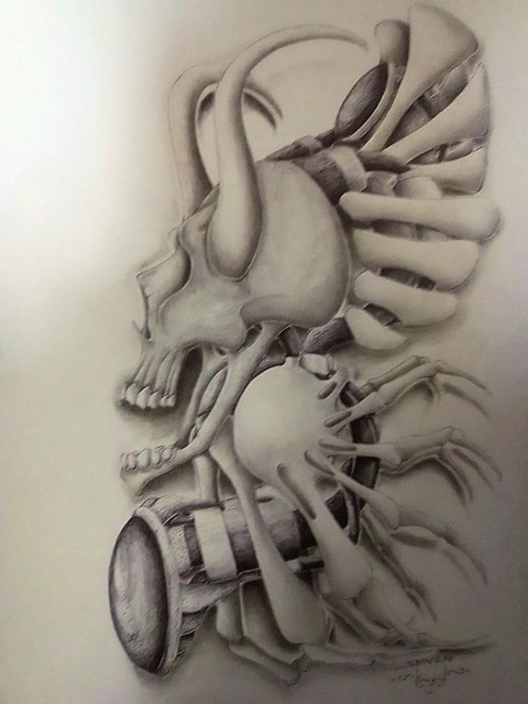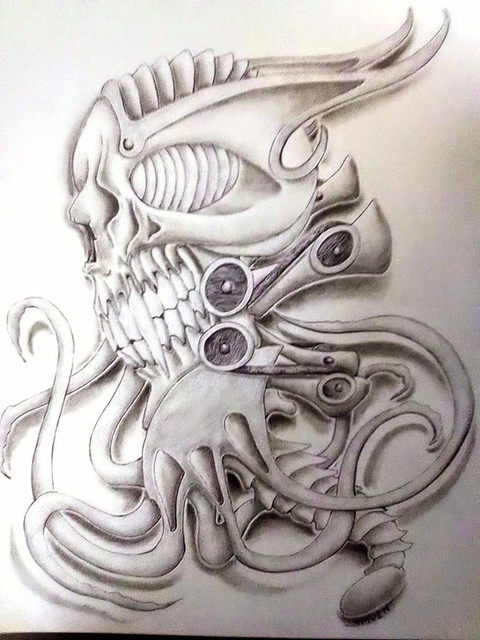 #coloured #traditionalart #monster #tattoo #skull #handdrawn #pen #machinery #skulls