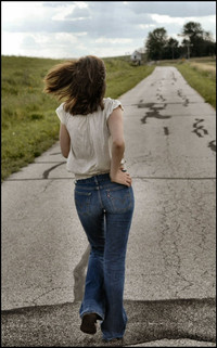 the photo has motion. she's walking away and the photographer wants her back