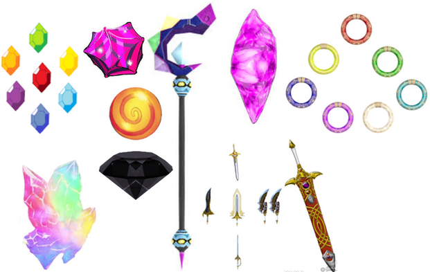Both rings were passed down through the family for generations. They served a mostly ceremonial roll in the Darkblood history, being used to formally "knight" a member of the family upon birth and in the case of twins one ring was given to each newborn... until recently. Being exposed to the natural latent Chaos Energy around the world, the rings were proven to be powerful tools once it was realized they were able to change their shape into a sword and shield.