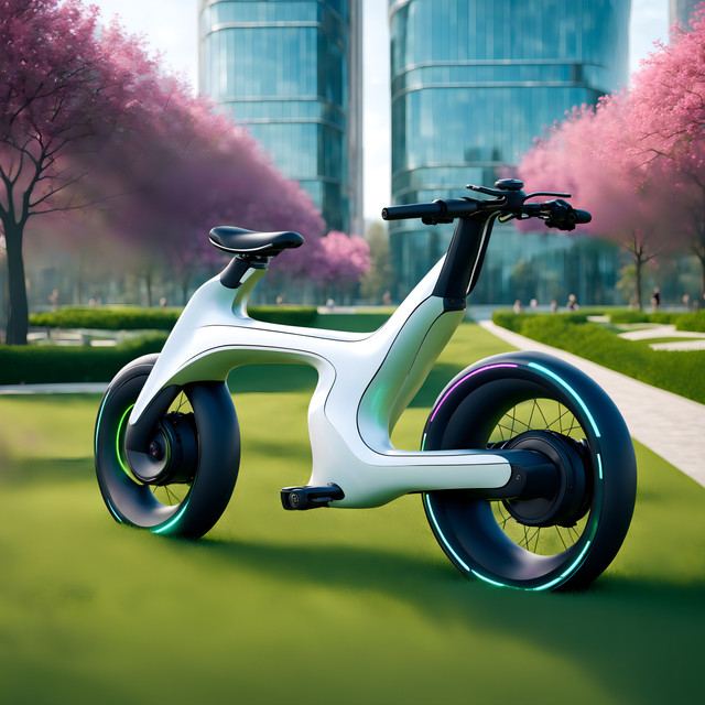 #car #vehicle #motorcycle #ai #dreamup #architecture #bicycle #electric #futuristic #gliding #lush #modern #park #sustainable #through #urban #with #ai_art