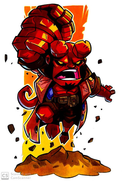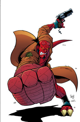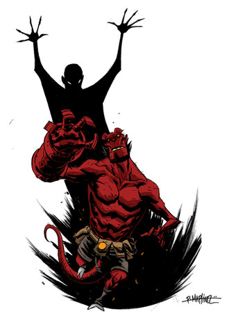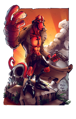 Excellent work, I have to ask did you do this in traditional media or digital? The colouring on Hellboy's arm is very well done with great use of texture and tone.
