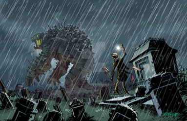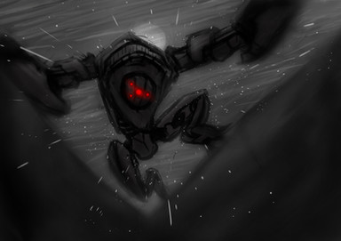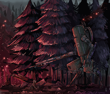 The misty faded silhouettes in the background really help to sell the tone and mood of the piece. I'm diggin' the design on the mandroid as well-great work!