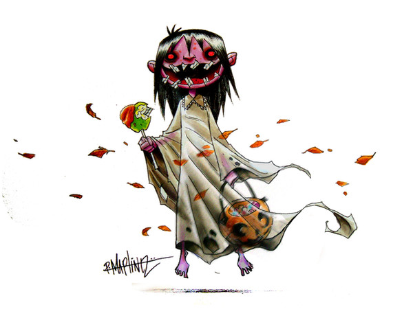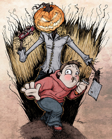 This is an awesome picture! You have such a distinct style, not only artistically, but in subject matter and character. I love the colors. They create an interesting contrast with the morbid subject matter.