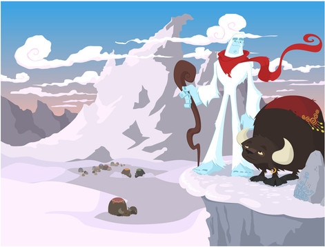 Really great piece. I love the color scheme! I appreciate the mountains in the background giving the figures some depth in space and the characters placed outside the boundary box i a nice touch. Great job overall.