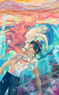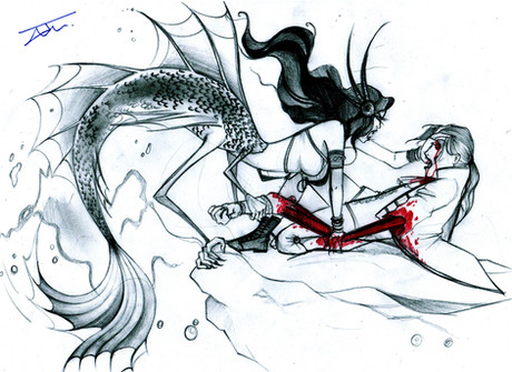 Aww, that's really sad. D: I like how the picture looks sort of off-centre, so it looks like it's full of action. The anatomy is really good too. Poor merman and his girlfriend.