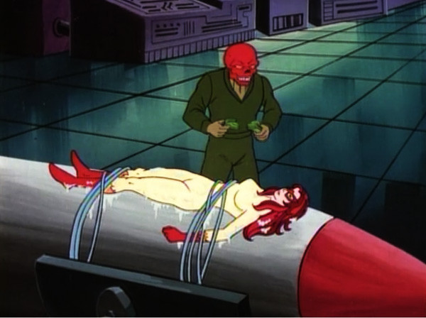 Diana Rigg strapped down to the slingshotΒ