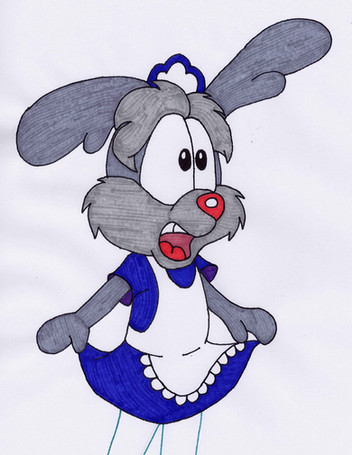 I can imagine Trix cereal bowls growing legs and running off at the sight of this crazy rabbit.