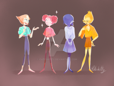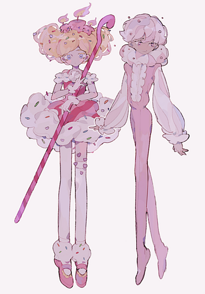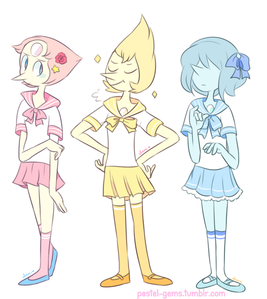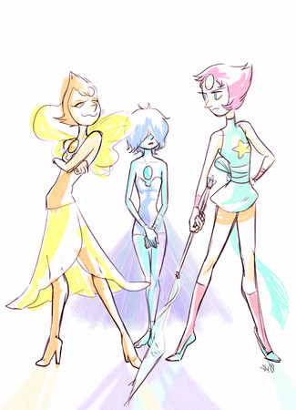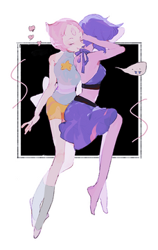 I'm not really a fan of Steven Universe, but I've heard some of the songs; they're pretty good C= Those outfits look really similar the ones from the Penguindrum ed! Were you going for that?