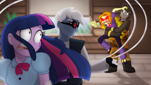 Twilight slowly began to stir awake. The first thing she saw was the back of her boyfriend and almost immediately, a feeling of intense, yet familiar, dread washed over. Weakly, Twilight stretched a hand out to the young man before her. "F-Flash?"