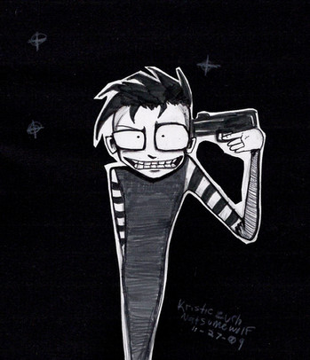 I was at my dad's and sketched this, then i put a revolver thinggy in the emo's hand.i just thought it was intresting and i needed to post something up here.