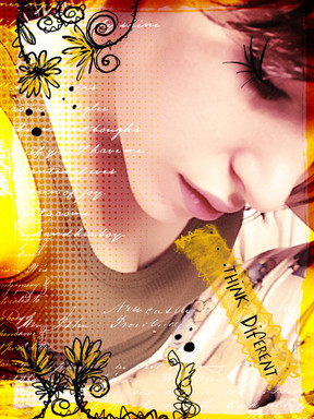 the pic is somewhat blurry and the type is bad. the overall composition is pretty good but it needs a little work. i'd change the font and clean up the pic a little by brushing it. great color. ;]