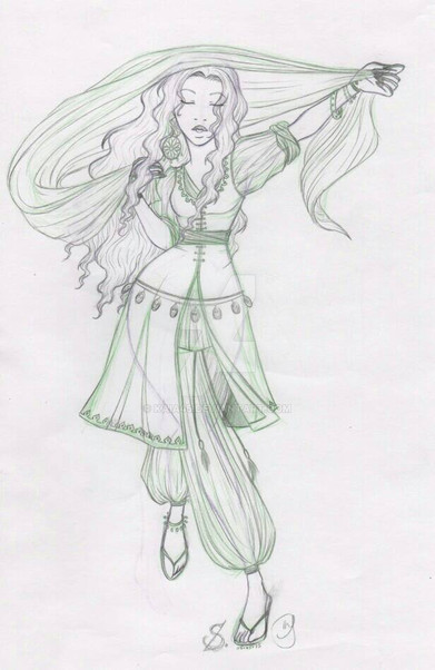 Based on the song by the same name by Sting. One of my favorite songs... ^^Yes, her legs are really long, I know, but... Otherwise, I'm pretty happy with how this turned out. It took me a while... And this is the pic that gave my mom the idea that I should be a clothing designer. o.o'' Uh... no. I hope she turned out as pretty as I meant her to... I'm re-drawing her in another pic of mine with several other characters, including the one from Spanish Dancer.