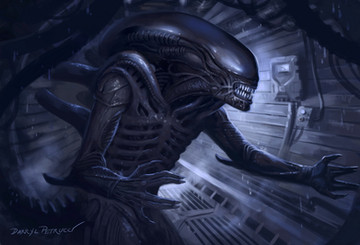 Stunning and epic painting of a classic xenomorph