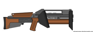 Sweetwater Precision Weapons (SPW) is a fictional Weapons company, the Operator series features conversions of existing weapons and new weapons according to the customer's wishes.The client ordered a custom GL similar in style and function to the China Lake EX-41 pump-action GL. SPW was only too happy to oblige with the customer's wishes and built a pump-action GL with a walnut stock, a three "round" tubular mag, a holder for additional ammo on the stock, top rails and a SPW sighting unit.