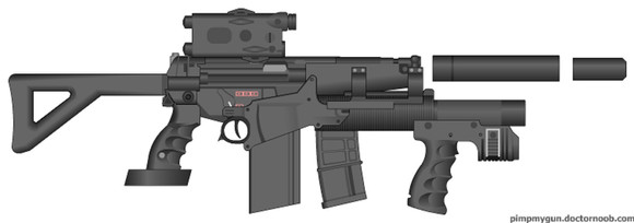 Sweetwater Precision Weapons (SPW) is a fictional Weapons company, the Operator series features conversions of existing weapons and new weapons according to the customer's wishes.Customer's specifications were as follows: added carry handle, custom, recoil-absorbing stock, changed charging handle layout, a 20mm revolver-launcher, an integrated LAM, a SPW RDS, and a SPW GL sighting unit.