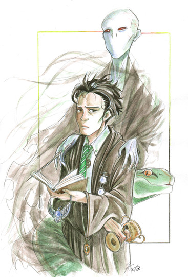 Amazing job I love how detailed you drew Tom and Nagini and left Voldemort a bit undetailed in the background, as though he's a shadow of what he used to be (: