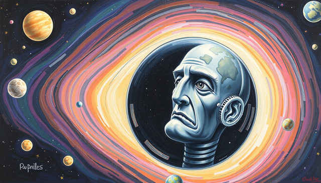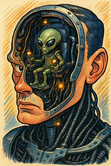 "We Come In Peace" is a part of the series with the same title "We Come In Peace". This series includes science-fiction artworks inspired by old sci-fi book covers./ I'm a self taught artist, still in a beginner phase. I like discovering and telling stories with my drawings and paintings.