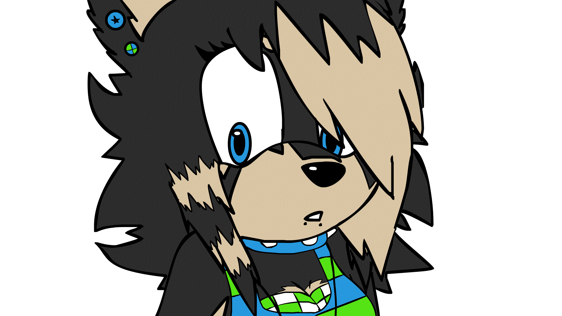 He has long, floppy ears and shaggy hair that goes to around his throat. X3