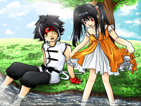 I was wondering if that was tyson, and hilary from the Beyblade series until I read the the description. I never knew what their japanese names were until now.