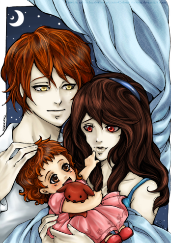 I don't mean to complain or anything, this is really an awsome pic and I admire you're work it's very nice, and I love vampires with fangs as much as I like twilight vampires, but Twilight vampires do not have fangs!