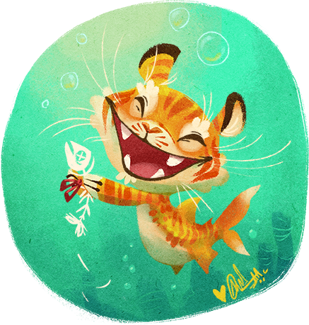 Wow thats so cool i love the very thin tiger and the cute fish >_<