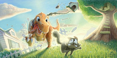 I see the Easter rabbit is doing his job: chasing around egg thieves. Lovely art style! And the idea... oh, that dragon had me chuckling for a long time...