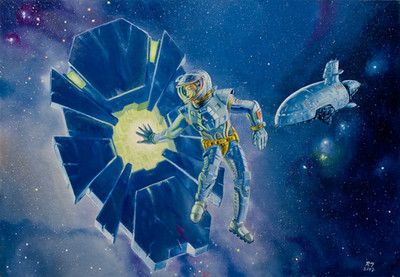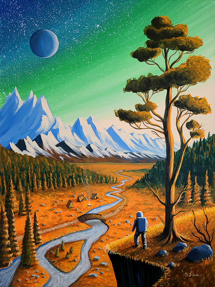 Just another little sci fi pulp cover inspired work.Water mixable oil paint.