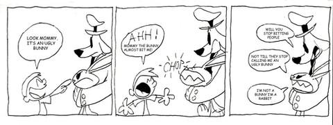 I like the sort of 'singed' look Dave gets after seeing the horns.....and how he seems all slumped over.....