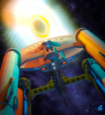 The Archer class scout, Sagittaruis, climbs towards flatspace after exploring the surface of a curious planet in the Taurus Reach.Just trying to get my Trek chops tuned up. Archer class scout mesh created by Mark Azevedo - www.3dmaz.com. Ship design by Masao Okazaki. Poser/DS conversion and enhancement by Ptrope w/ texture support by Arcas.