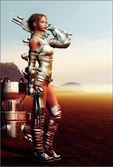 I have to agree with Chris about the suit, very classic look and done very well. Is the helmet/backpack something you made or found? Also the model has an A3 look to her or is that my imagination? The image, pose, postwork all came together in a most outstanding way! It may be one of your older pieces but it definitely stands the test of time and is a real testament to your abilities.