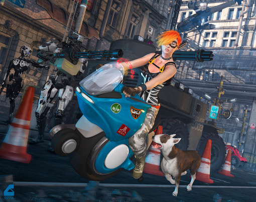 Looking forward to it Don't know why but an image just popped into my head, but I'll share: Her on her bike trying to out run a ship that's crash landing....