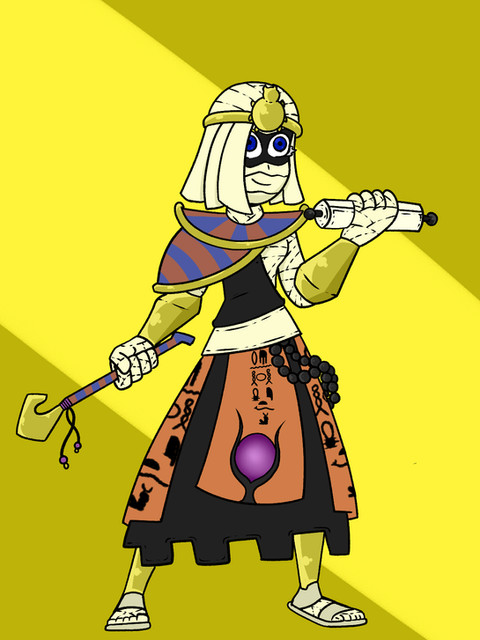 To expand on her back story a little- Tanis was resurrected by accident at a museum where one archaeologist by the name Dr Josephine Norton, while reading a ancient scroll she discovered buried with the chid's sarcophaguses. Tanis, haven woken up, curiously walks over to Dr Norton's desk while she was finishing the text and gently tugged at her sleeve, scaring the living daylights out of the poor woman. Tanis herself was pretty startled to and runs out of the room and into the museum hallways. She is continually frightened by the museums other exhibits from medieval armour, Japanese oni masks, eagle totems, stuffed animals, manikins of Mongol warriors and the giant t-rex skeleton at the entrance.