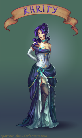 Third in my series of MLP girls as D&D adventurers, here we have the lovely Rarity. Of all the designs I've hashed out, I think Rarity's is my favorite; part medieval duchess, part Disney princess, and with just a smidge of southern antebellum. Mostly inspired by her look at the Gala.Of course, in the rough and tumble life of an adventurer, such a nice dress would surely get ruined-which is why Rarity always makes sure to carry an extra outfit! ([link] )