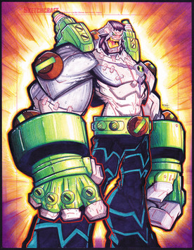 Frank Ruffy 03 - So, going back to a modified ver of the orig gloves and bulked up Frank. On the far left is his human "hologram" form, something I requested from Kevin so the Monstroids could blend into society better when they are out and about. In the center is his basic Monstroids form, and the far right his battle mode complete with armored top. I'll take these to final pending approval.Last Making Monstroids