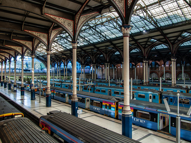 I really like this shot Really captures the complexity of the station, especially the roof details, and its full of little scenes and cameos to look at. Well composed too, with the symmetry provided by the two voyagers, and the other stock in matching platforms.