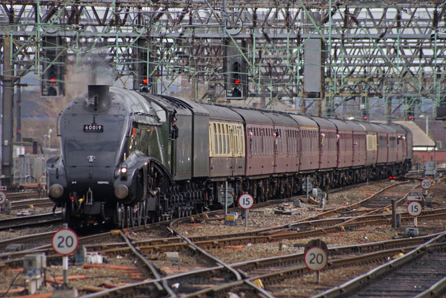 Well t start off with this is a A4, only 5 are left in exsistance, from which 3 are in the UK and only currently this one works, Union of South Africa will again work someday currently being refurbished and Mallard as you may know sits in our National Tain Museum in York as a monument for being the fastest steam train on the planet. The remining two are in Canada and American in museums.