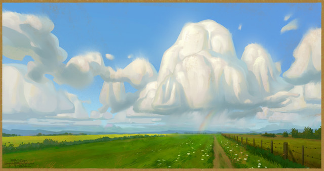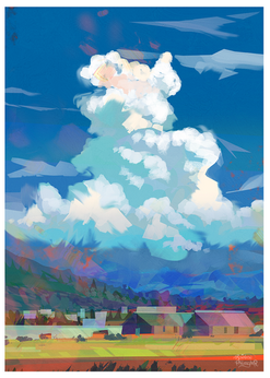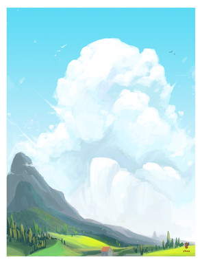 This is wonderful The cloud was certainly worth the extra effort, it's quite stunning! And I like the way you painted the landscape itself, very clear-cut and impressive. Great work!