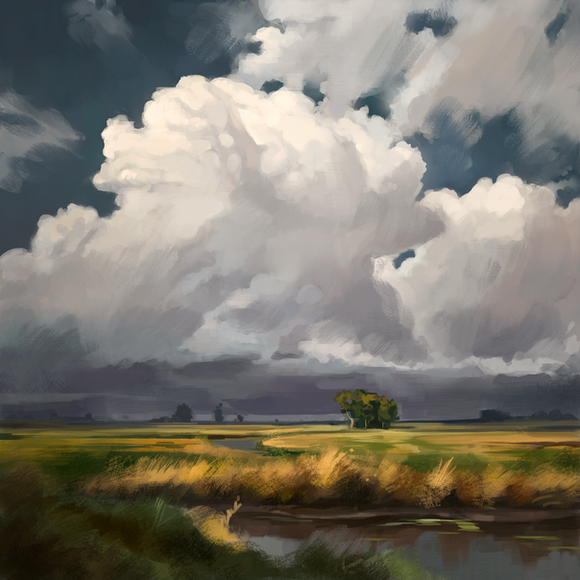 Another landscape practice, this time a little more detailed.I wanted to take my time with this one, really get the clouds just right, and also to try out a new technique on the landscape.