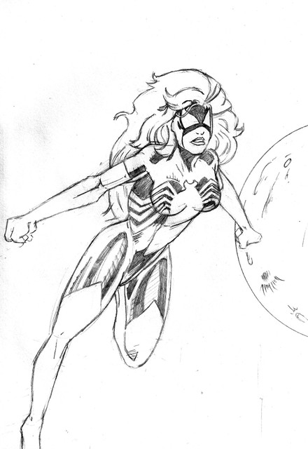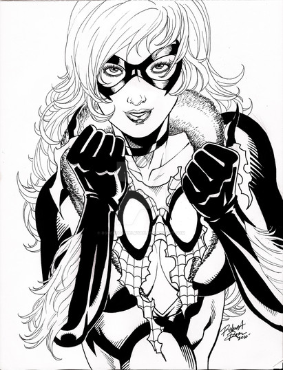 Here's a drawing I did for a Marvel fansite. I was so happy with the first drawing I did for them here: [link]until I found out I had totally screwed up and it was supposed to be Silver Sable holding the Spidey mask not Black Cat. ARRRRRRRRRGH!!! I felt like such an idiot haha but it's not in vain because I am happy with the way Black Cat came out.