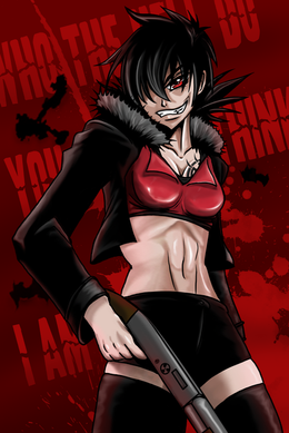 I made a guy nervous like that once. Of course, I didn't do what Revy did in ZombieFighter116's comment. I just scared the crap out of him. And enjoyed every second of the torment I put him through...... I've been told I'm a little unstable. Not nearly as much as Revy, but still unstable. very nice pic btw. You base it on a scene in the manga or in the anime? Or just thought it up? I've seen the anime but haven't read the manga.