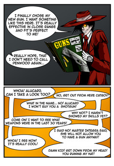Thank you very much! Yes, those guys can get pretty annoying sometimes But I glad to see that not every Alucard and Seras fans burst out in rage when someone states that Alucard and Seras don't have a romantic relationship (at least Hirano don't meant to paint them this way)