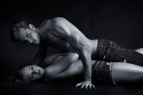 Fantastic pose - great lighting that picks out the details of two fine human forms.