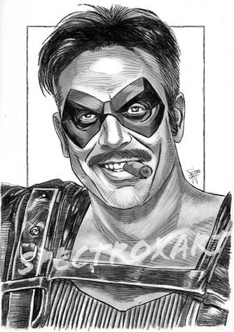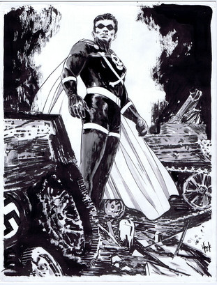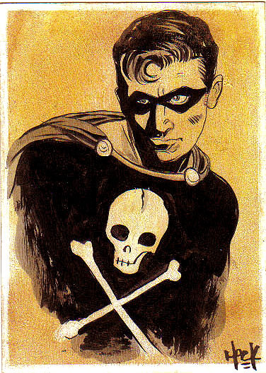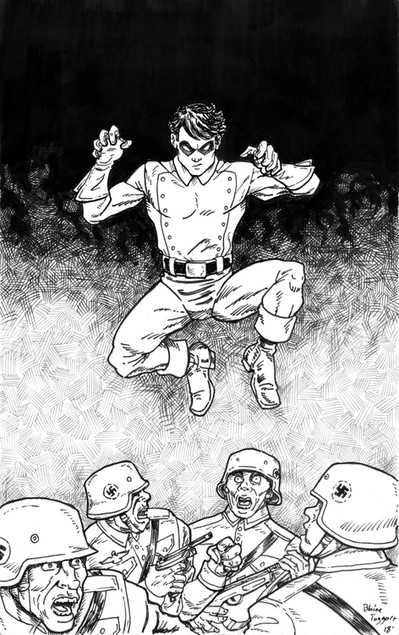 The Golden Age superhero The Black Terror, drawn for Breygent Marketing's Project Superpowers trading card set.Related content