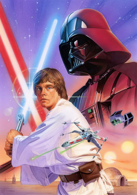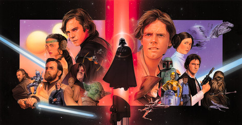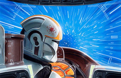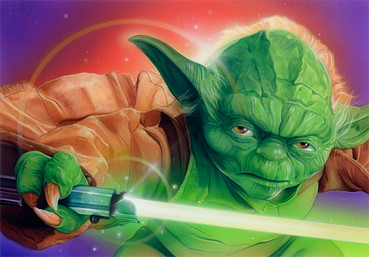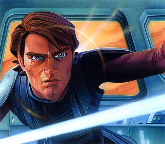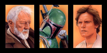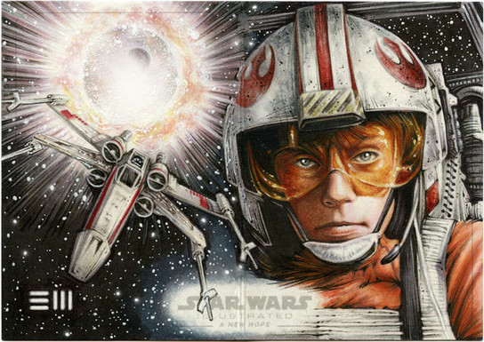 Star Wars Illustrated Topps sketch card commission. Painted on a 2 sided folded card.Acrylic and colored pencil